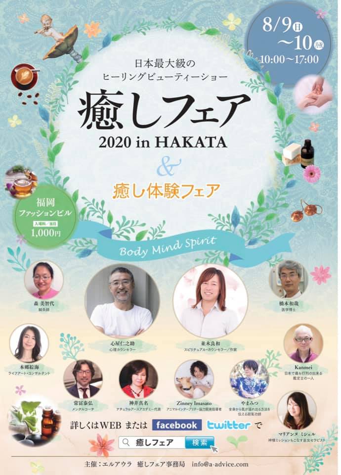 (緊急告知)8月9日(日)13:00-13:30 ギフトタンク代表のZinney Imasato出演/癒しフェア2020in 博多