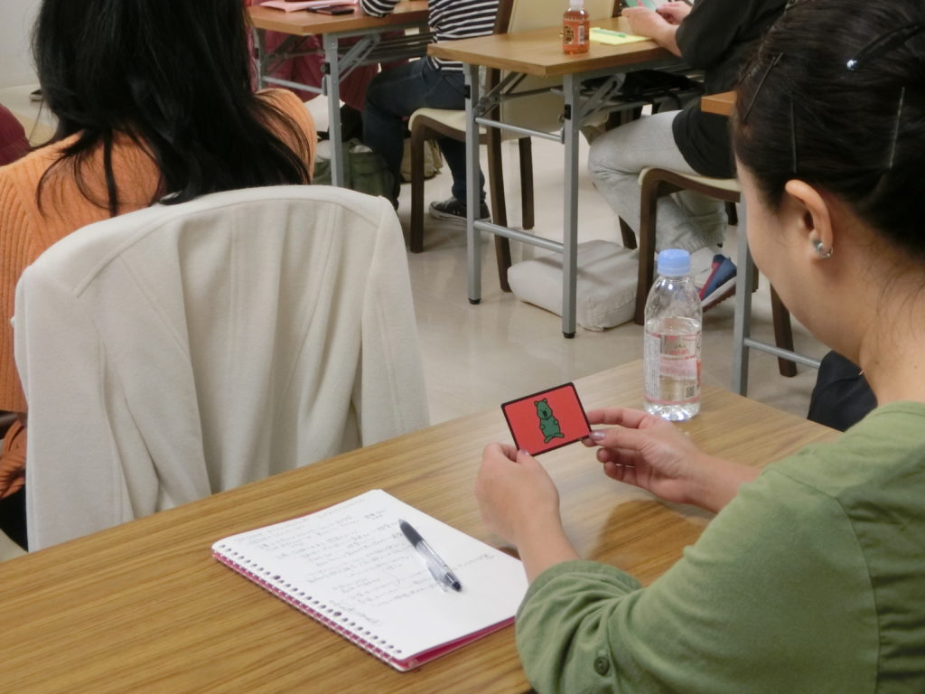 そして、アニマルコミュニケーションの最適な脳波の状態をトレーニングするために、日々できるワークも共有。 写真の中の赤と緑のカードはSAVICオリジナルのクウォッカード、参加者様の受講特典です。こちらのカードは、日々の練習用に皆さまにお持ち帰り頂きました。