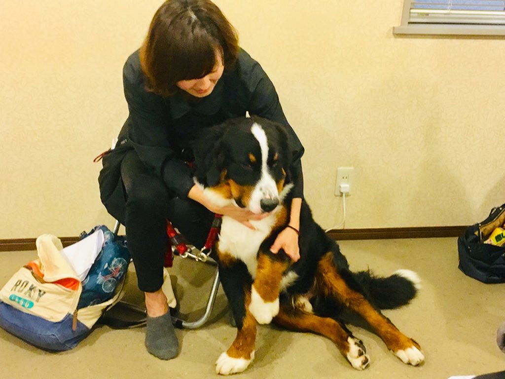 人間相手のヒーリングのペアワーク後には、肩のコリが楽になったとか目がスッキリした、という受講生も!!実際に変化や効果を感じるヒーリングを体験したあとは会場のわんちゃん相手にペアワーク、ヒーリングを練習しました。 こちらはヒーリングペアワーク中のわんちゃん達の様子です。うっとりした表情でリラックス・・・。会場内はヒーリングのエネルギーに満ちていました。